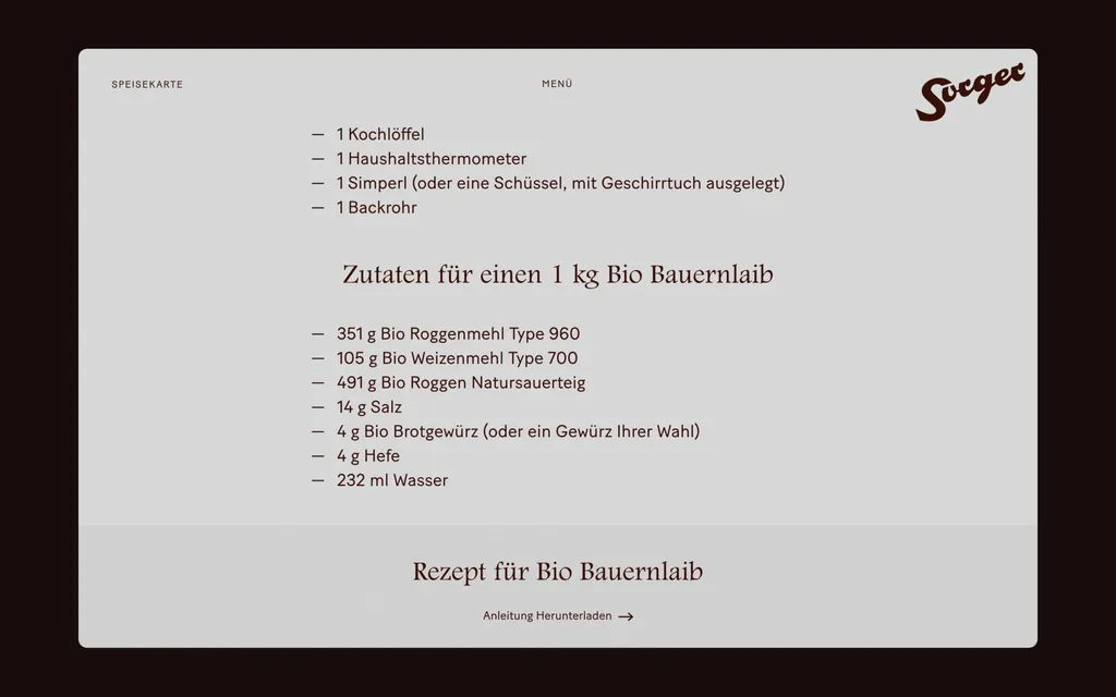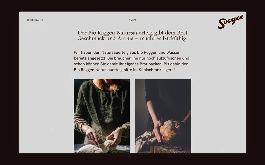 Für die Bäckerei Sorger entwickelte ontu einen Webauftritt, der sich Zeit nimmt. Zeit für die Erzählung, die Werte und die Herkunft der Traditionsmarke. Mit dem digitalen Mittagsmenü und der Vorbestellungsfunktion erweitert ontu die Website und positioniert Sorger zukunftsfähig im digitalen Raum.